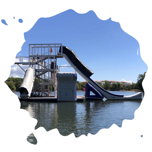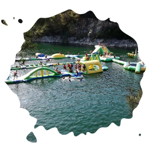 Cette structure permet aux enfants et aux adultes de profiter d’un parcours ludique sur l’eau.