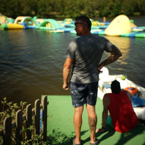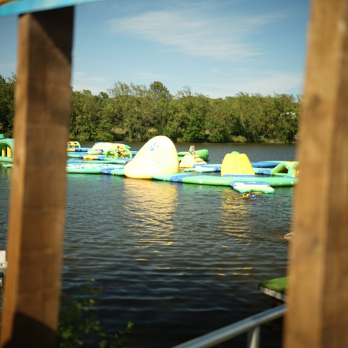 Cette structure permet aux enfants et aux adultes de profiter d’un parcours ludique sur l’eau.